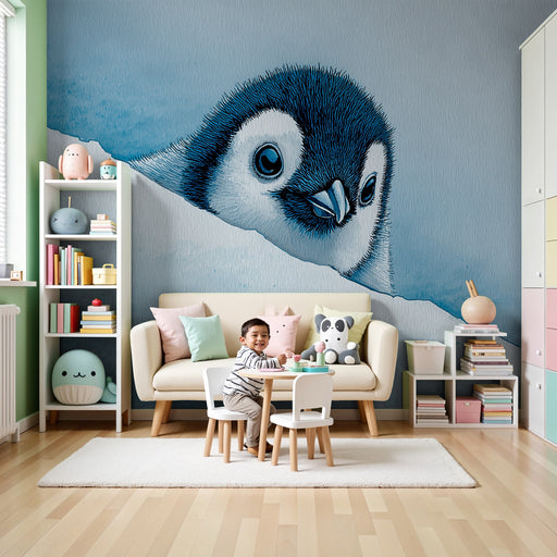 Alle gegevens bekijkenKinderkamer behang | Speelse pinguïn op ijzige achtergrond