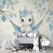 Ce papier peint licorne rêvée est idéal pour la chambre d'un bébé. Affichant une charmante licorne bleu pastel confortablement installée dans un hamac suspensu entre des branches feuillues, ce motif enchanteur apporte une atmosphère douce et magique à l'espace.