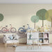 Dit kinderkamerbehang is ideaal om spel en creativiteit te stimuleren. Combineer het met licht houten meubels en kleurrijke accessoires voor een harmonieuze en inspirerende omgeving. Met Kids Wall wordt elke dag een nieuw avontuur op de fiets in een betoverende wereld.