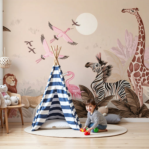 Papier peint chambre enfant | Safari exotique pastel