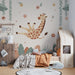 Babykamer behang | Vrolijke giraf tussen gekleurde bloemen en bladeren