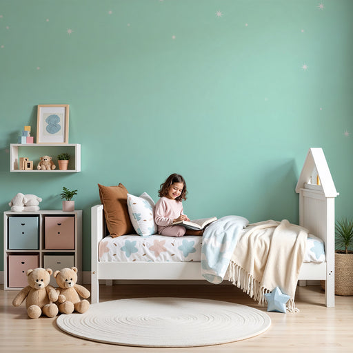 KidsWallTransformeer de kamer van uw baby in een echt cocon van zachtheid met dit babykamerbehang met een delicaat ontwerp. Een rustgevende muntkleurige ac...