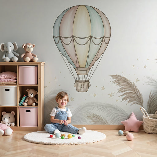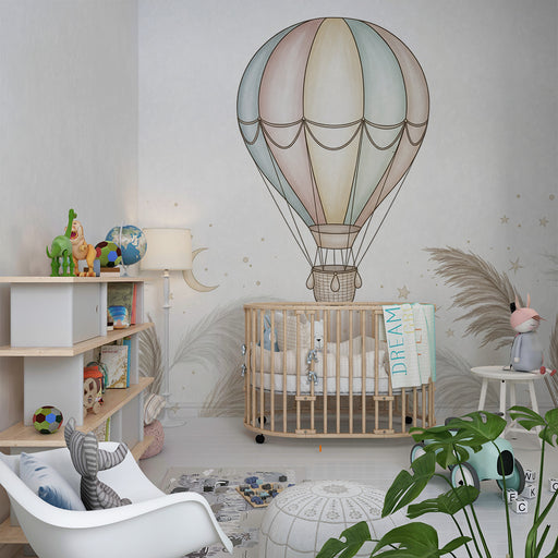 KidsWallStap in een sprookjesachtige reis naar de kamer van je baby met dit babykamerbehang dat een charmante pastelkleurige luchtballon illustreert. Zweve...