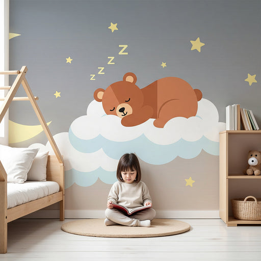 Alle gegevens bekijkenBabykamer behang | Avontuurlijke beer in de wolken