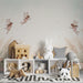 De zachte tinten roze en groen creëren een rustgevende sfeer, ideaal voor de kamer van je baby. Hoge grassen en bloeiende bloemen voegen een vleugje natuur toe, waardoor de ruimte verandert in een echt cocon van zachtheid. Elk detail is zorgvuldig geïllustreerd om de verbeelding van de kleintjes te vangen.