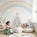 Babykamer behang | Feeënkasteel onder een pastelregenboog