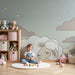 Transformeer de kamer van uw baby in een zachte cocon met dit babykamerbehang dat een rustig slapend schaap in de wolken illustreert. De zachte tinten van grijs en wit creëren een rustgevende sfeer, ideaal voor slaap en dromerij.