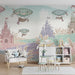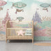 Babykamer behang | Sprookjesachtige kastelen en luchtballonnen in een pastel landschap