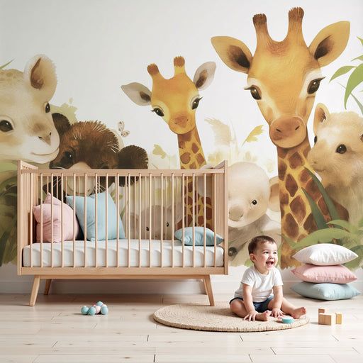 Alle gegevens bekijkenBabykamer behang | Vriendelijke giraffe in de jungle