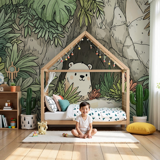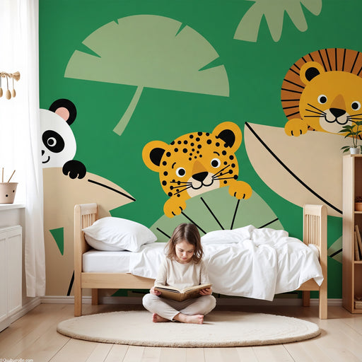 Duik in een wereld waar de natuur heerst! Ons jungle behang transformeert kinderkamers in ware havens van avontuur en ontdekking. Voor een natuurlijke en rustgevende sfeer, laat u verleiden door ons groentinten behang voor een junglemuur dat de essentie van het tropisch regenwoud vangt. Van weelderig gebladerte tot exotische dieren, elk detail is ontworpen om de verbeelding te prikkelen en een natuurlijke cocon te creëren die bevorderlijk is voor de ontwikkeling van uw kleine ontdekkingsreiziger.