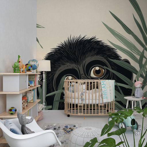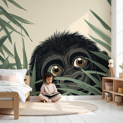 Alle gegevens bekijkenBabykamer behang | Kleine gorilla verstopt in de jungle