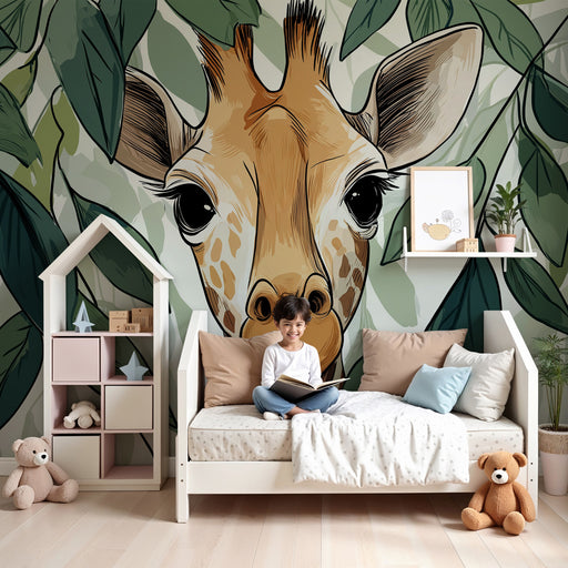 KidsWallRedecoreer de kamer van uw kind met dit kinderkamerbehang met een schattige giraffe die oprijst uit weelderig groen. Met zijn grote expressieve oge...