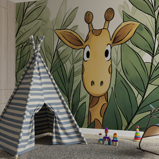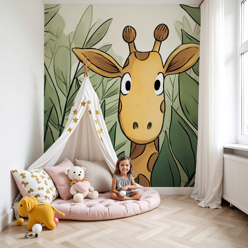 Alle gegevens bekijkenKinderkamer behang | Nieuwsgierige giraf in het hart van de jungle