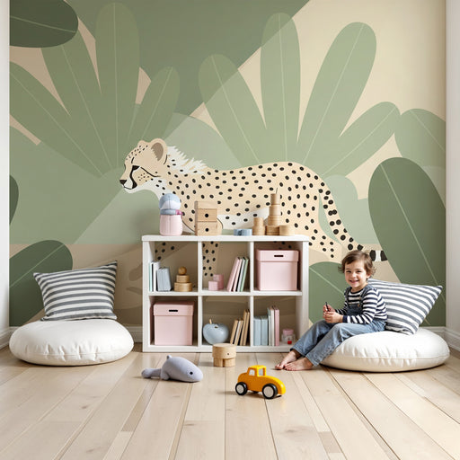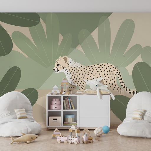 KidsWallTransformeer de kamer van uw kind in een echt avontuurlijk heiligdom met dit kinderkamerbehang met een gracieuze luipaard die door een weelderige j...
