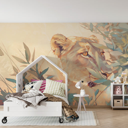 Alle gegevens bekijkenKinderkamer behang | Leeuwin in de jungle