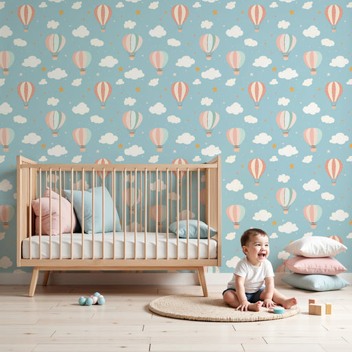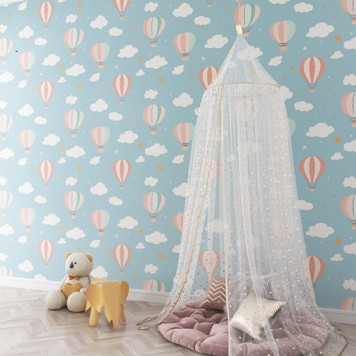 KidsWallTransformeer de kamer van uw kind in een betoverende ruimte met deze luchtballon behang. Het roept luchtlandschappen op en is geïllustreerd met del...