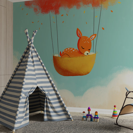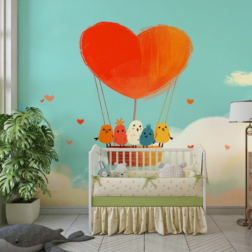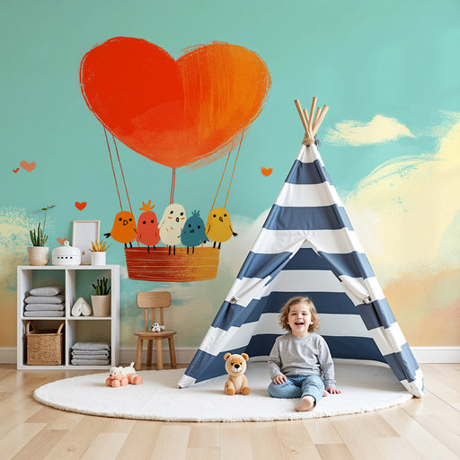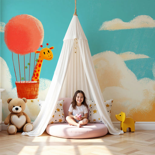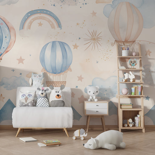 KidsWallBied uw kind een reis naar het hart van de wolken, waar de lichte luchtballonnen en de pastel regenbogen zweven in een lucht vol zachtheid. Dit kin...