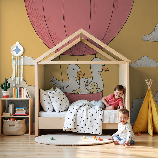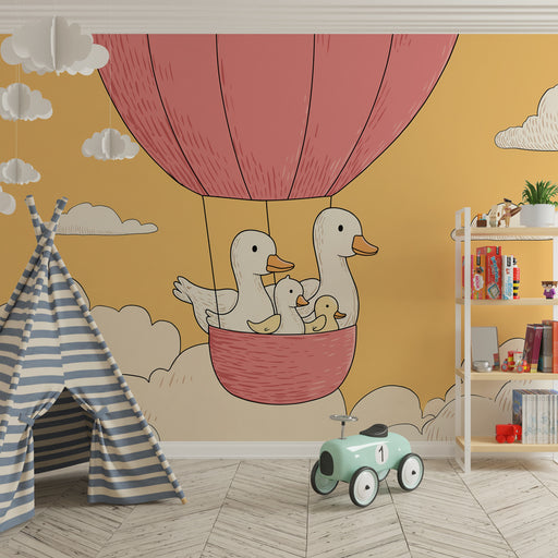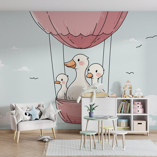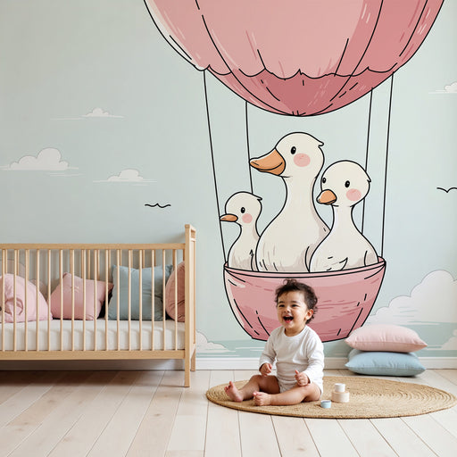 Alle gegevens bekijkenBabykamer behang | Eenden in luchtballon in de lucht