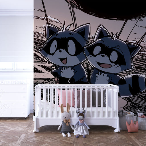 KidsWallStap in fantastische avonturen in de kamer van uw kind met dit kinderkamerbehang dat twee schattige wasberen toont die in een luchtballon vliegen. ...