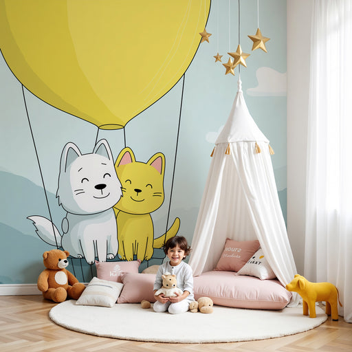 KidsWallEmbarquez pour une aventure aérienne avec ce papier peint pour enfants mettant en scène un adorable duo de compagnons : un chien blanc et un chat j...