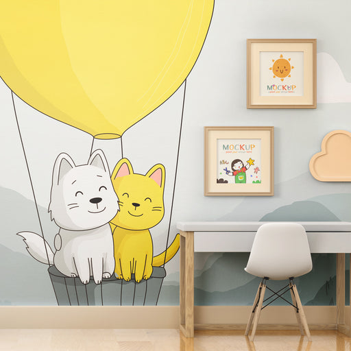 KidsWallEmbarquez pour un voyage rempli de joie et de tendresse avec ce papier peint pour enfants illustrant deux adorables chats en montgolfière. Léger et...