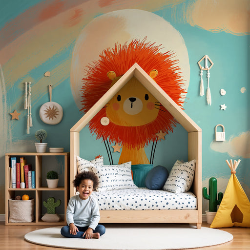 KidsWallVerhoog de decoratie van de kamer van uw kind met dit speels en kleurrijk kinderbehang. Boven in de lucht geniet een schattige kleine leeuw van een...