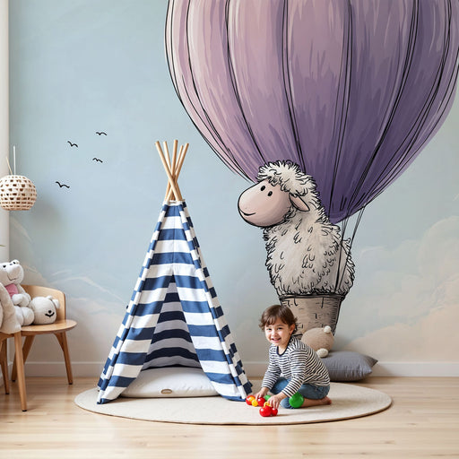 Alle gegevens bekijkenKinderkamer behang | Schaap in een luchtballon
