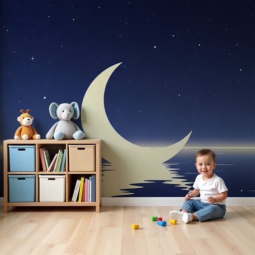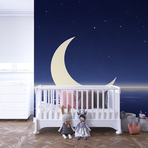 KidsWallTransformeer de kamer van je baby in een betoverend nachtelijk universum met dit babykamerbehang. Een zachte, heldere maan weerspiegelt in een rust...