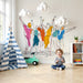 Met zijn felle kleuren en sierlijke bewegingen stimuleert dit kunstzinnige behang de verbeelding en voegt het een vrolijke noot toe aan het interieur. Perfect voor kinderen die gepassioneerd zijn door muziek en dans, dit levendige behang moedigt expressiviteit en levensvreugde aan.