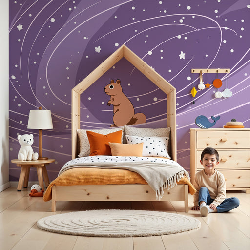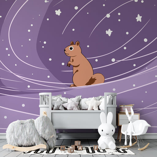 KidsWallTransformeer de kamer van uw kind in een fascinerend universum met dit kinderbehang dat een nieuwsgierige eekhoorn laat zweven tussen de sterren. O...
