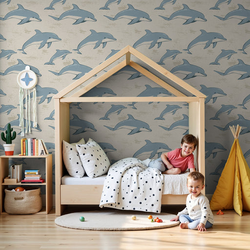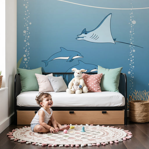 KidsWallTransformeer de kamer van uw kind in een fascinerende onderwaterwereld met dit decoratief behang. Versierd met schattige dolfijnen in zachte blauwe...