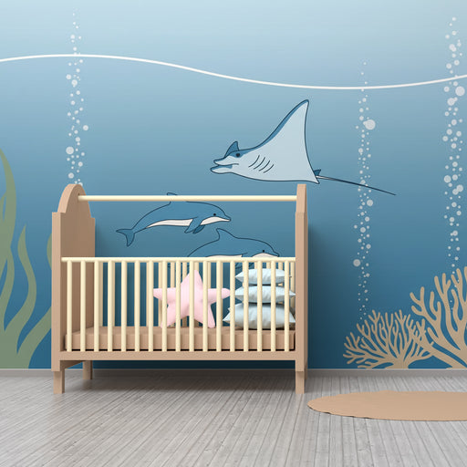 Alle gegevens bekijkenKinderkamer behang | Onderwateravonturen met roggen en dolfijnen