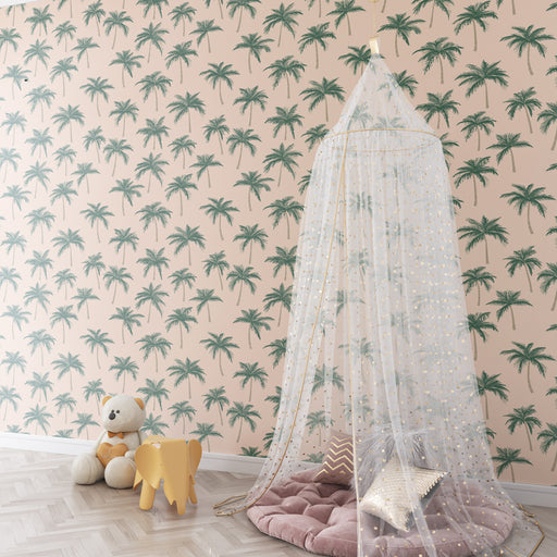 KidsWallHerontwerp de kamer van je kind tot een echt tropisch paradijs met dit kinderkamerbehang. Versierd met prachtige groene palmbomen op een pastelacht...