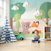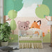 Babykamer behang | Beer en vos in een zachte en kleurrijke omgeving