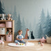 Redesigneer de kamer van uw kind tot een echt sprookje met dit kinderbehang met een vos en een konijn in een magisch bos onder de sneeuw. De majestueuze bomen staan op de achtergrond, waardoor een rustige en sprookjesachtige sfeer ontstaat, ideaal om de verbeelding van kinderen te stimuleren.