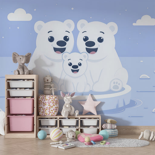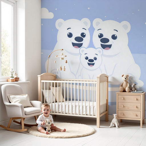 Papier peint chambre bébé | Famille d'ours polaires