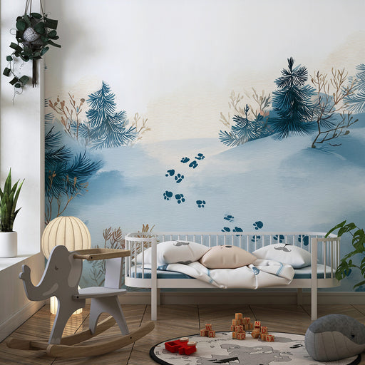 Kinderkamer behang | Besneeuwd landschap en mysterieuze afdrukken