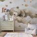 Transformeer de kamer van uw baby in een zachte cocon met dit babykamerbehang met een schattige beer die op een wolk slaapt. Omringd door dwarrelende gouden bladeren, moedigt deze magische wereld rust en sereniteit aan, perfect om de nachten van uw kleintje te kalmeren.