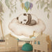 De delicate hangende bladeren voegen een vleugje natuur toe, waardoor een harmonieuze en warme omgeving ontstaat. Elk detail, van de vacht van de panda tot de zachte rondingen van de wolk, is zorgvuldig geïllustreerd om een gevoel van comfort en tederheid te brengen.
