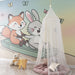 De gebruikte pasteltinten, zoals blauw en roze, voegen een vleugje lichtheid toe aan de inrichting, terwijl de ondeugende personages vriendschap en avontuur oproepen. Elk detail, van de stralende glimlachen van de dieren tot de delicate vleugels van de vlinders, is zorgvuldig uitgewerkt om de verbeelding van de kleintjes te prikkelen.