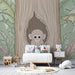 Omhuld door delicate en kleurrijke tropische bladeren belooft de aap, met zijn ondeugende blik, een warme en uitnodigende sfeer. De zachte tinten groen en beige zorgen voor een rustgevende touch, terwijl de minutieuze details van de boomschors een boeiende diepte en realisme toevoegen. Elk element is zorgvuldig ontworpen om een verrijkende denkbeeldige wereld te creëren.
