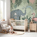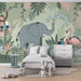 Transformér barnets rom til en ekte tropisk paradis med denne barnetapeten som illustrerer en lekende jungelscene. En smilende elefant spruter vann mens en rampete ape svinger seg gledelig blant frodig løvverk. I nærheten står en grasiøs rosa flamingo på vannet og tilfører en sjarmerende touch til dette levende dekoret.