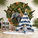 Transformér barnets rom til en ekte naturhelligdom med denne barnetapeten som viser en majestetisk elefant og en grasiøs giraff omgitt av strålende tropisk vegetasjon. De frodige bladene og eksotiske blomstene skaper en levende og fargerik stemning, perfekt for å stimulere fantasien til små eventyrere.