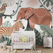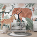 Tapet barnerom | Elefant, sebra og papegøyer i en fargerik jungel