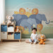 Tapet barnerom | Elegante elefanter og løver på savannen