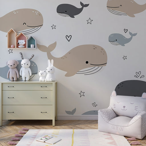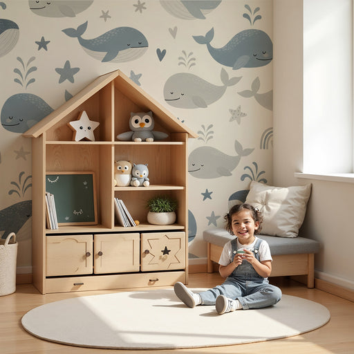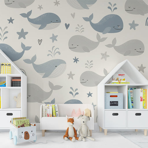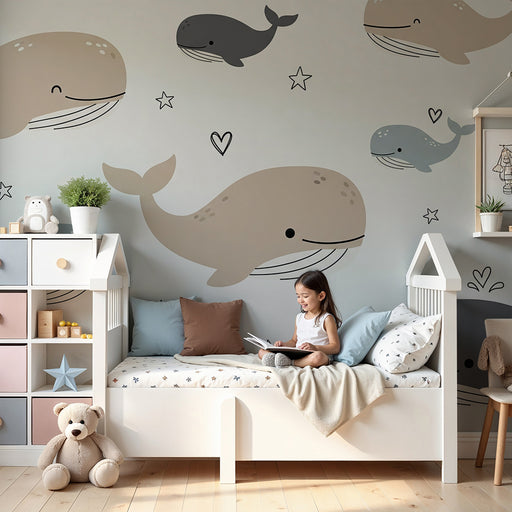 KidsWallDykk inn i en fortryllende havverden med denne tapetet for barnerom dekorert med sjarmerende hvaler. Disse elskverdige skapningene, med beroligende...