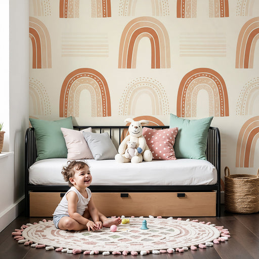 KidsWallRedécorez la chambre de votre bébé avec ce tapet for barnerom orné de charmants arcs-en-ciel. Les teintes douces de beige et de terracotta créent u...