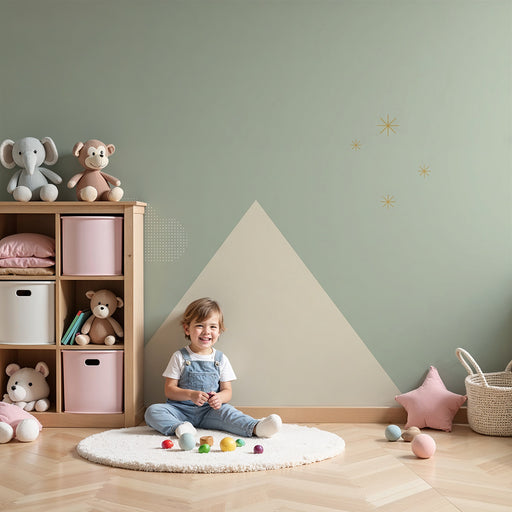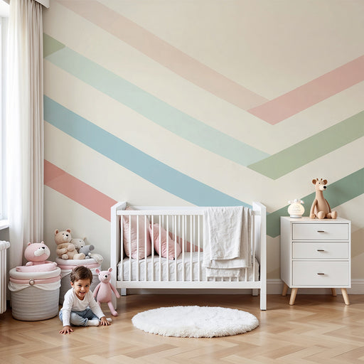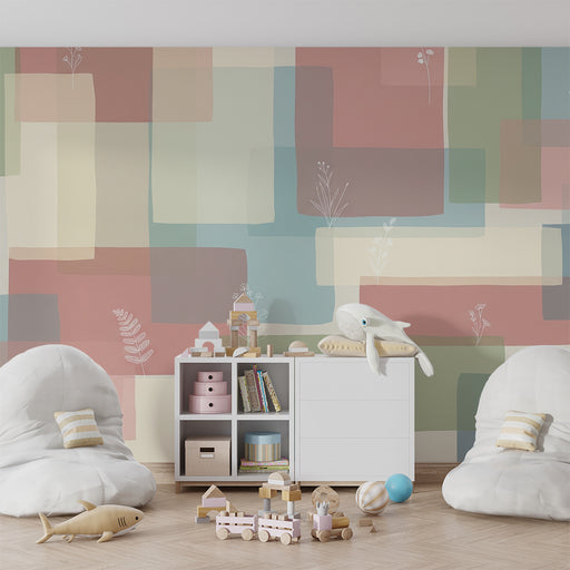 KidsWallTransformér barnerommet med denne tapetet for barnerom med beroligende geometriske mønstre. Rektangler i pastellfarger som rosa, grønn, blå og krem...