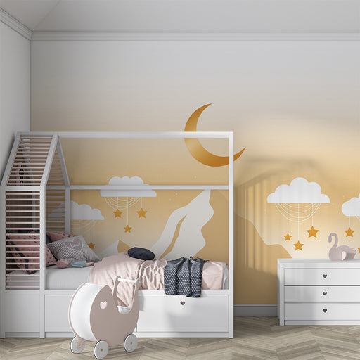 Vis alle detaljerTapet barnerom | Gylne fjell og stjerneskyer