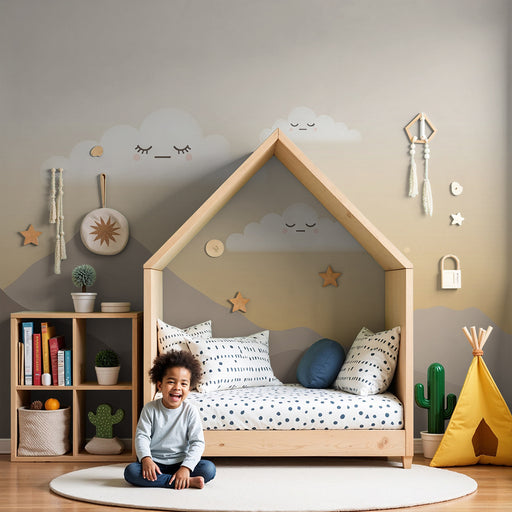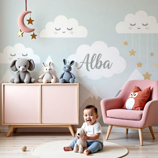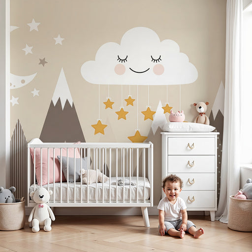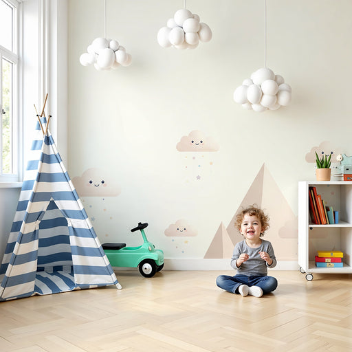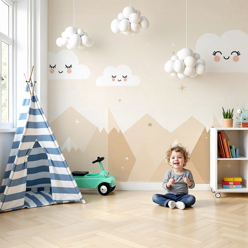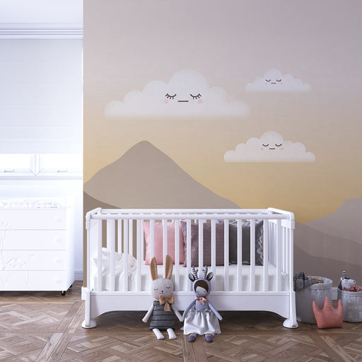 KidsWallTransformér babyrommet til en fortryllende verden med denne tapetet for barnerom som viser myke fjell og smilende skyer. I en beroligende dekor leg...